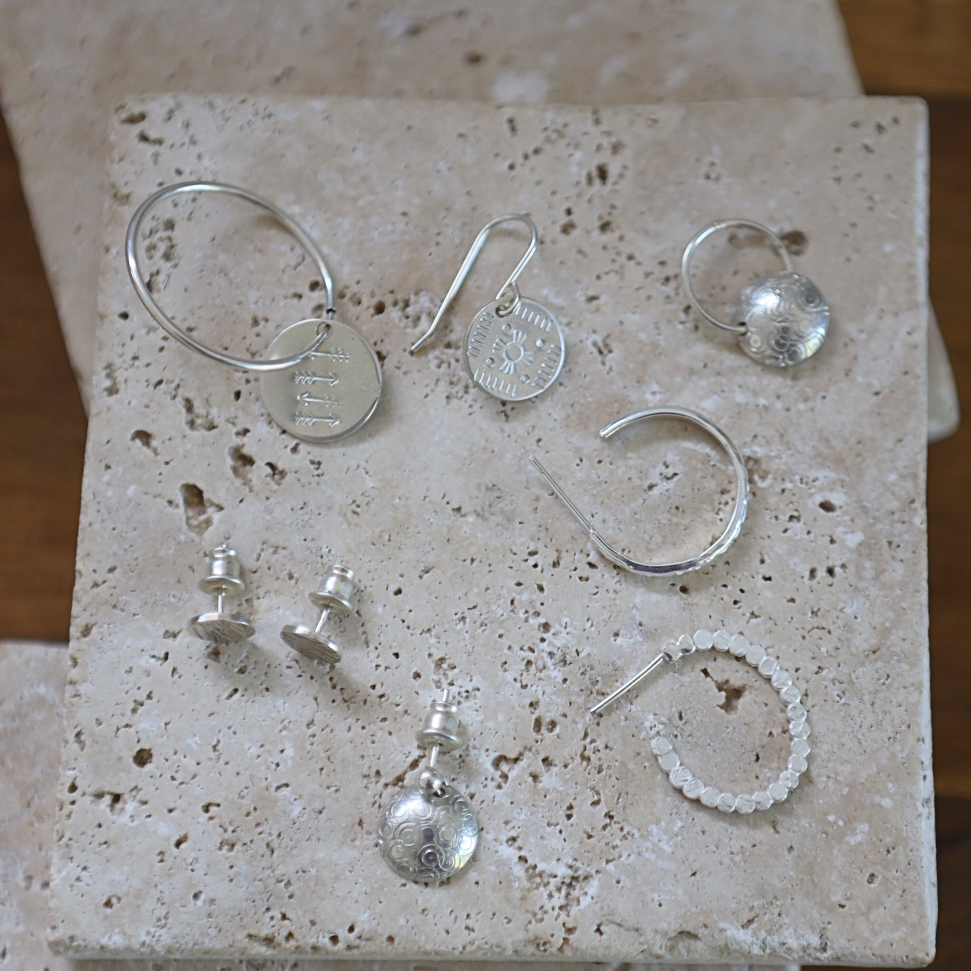In this workshop you will be shown how to shape, form, apply textures and solder your very own pair of Sterling Silver stud, hook or hoop earrings.