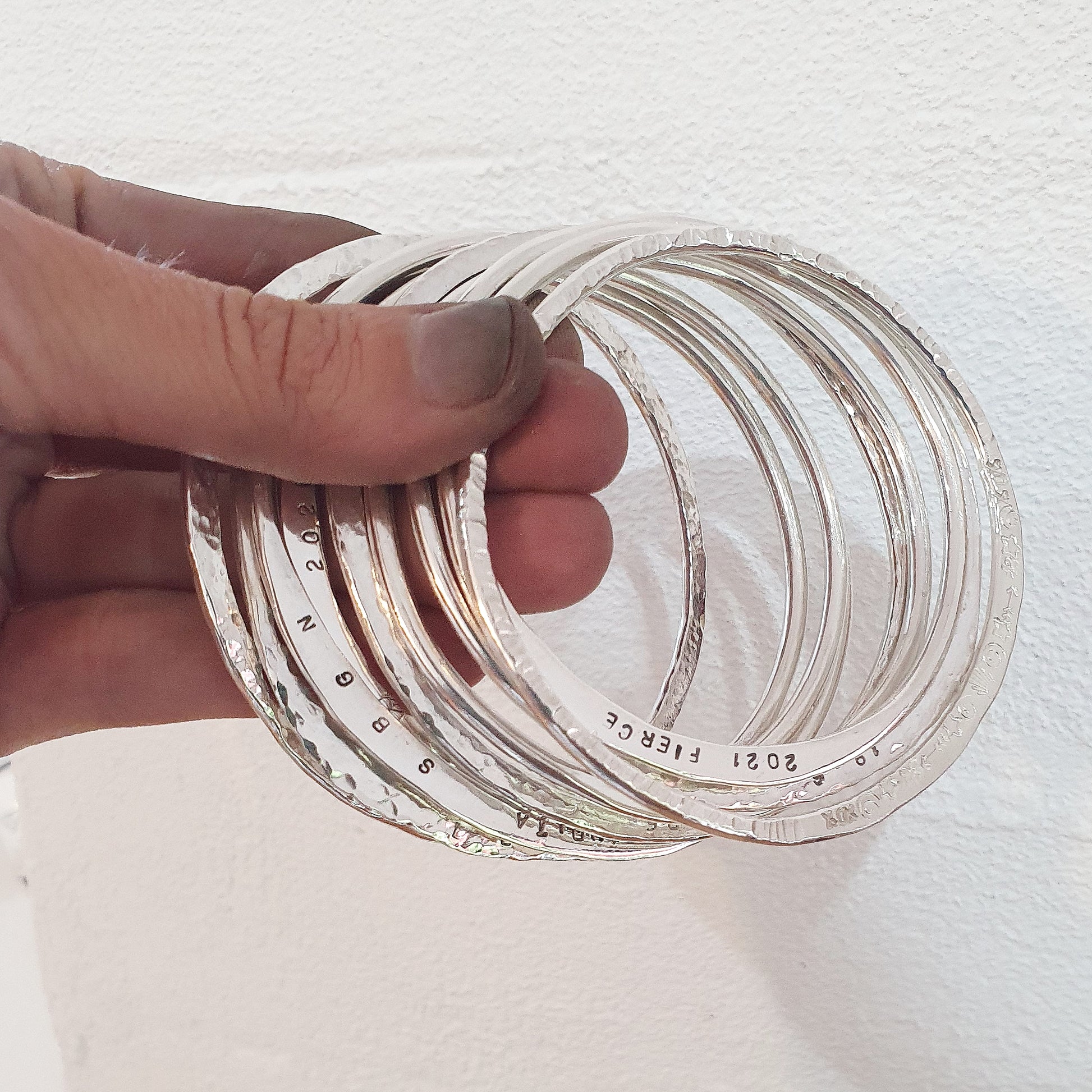 In this workshop you will be shown how to correctly size, shape, solder and form your very own Sterling Silver bangle. You have the option of applying texture or stamped words or patterns.